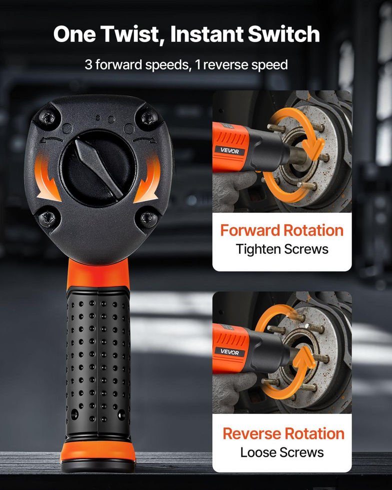 VEVOR Air Impact Wrench, 1/2" Drive Pneumatic Impact Wrench Up to 1490N.m Reverse Torque, 7500RPM 4-Speed Adjustable & Lightweight Pneumatic Gun for Auto Repairs and Maintenance