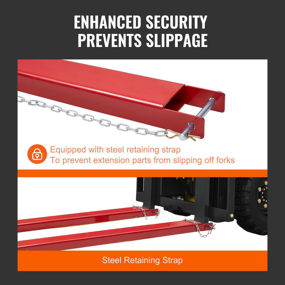 VEVOR Pallet Fork Extensions, 1840 mm Length 115 mm Width, Heavy Duty Carbon Steel Fork Extensions for Forklifts, 1 Pair Forklift Extensions with Pins, Forklift Fork Attachments for Forklift Truck, Red
