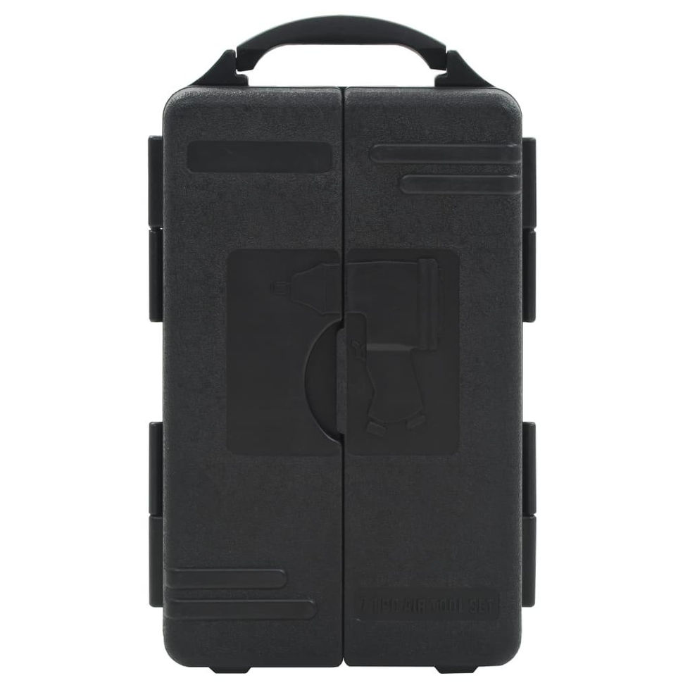 This complete set contains a selection of popular air tools (a 1/2" air impact wrench, a 1/4" air die grinder, a 3/8" air ratchet wrench, a 150 mm air hammer and a blow gun) and related accessories (such as hose fittings and couplers, hammer chisels, grinding stones, impact sockets, etc.) for professional driving, sanding, chiselling, etc. This pneumatic toolkit is a must-have for any workshop, garages and sheds. These air tools have a robust, yet lightweight aluminium body for durability. Thanks to their ergonomically-designed handles, these air tools are easy to control. Featuring high efficiency and simple operation, these pneumatic tools will provide an excellent performance. All air tools and accessories are delivered in a handy blow-moulded case.