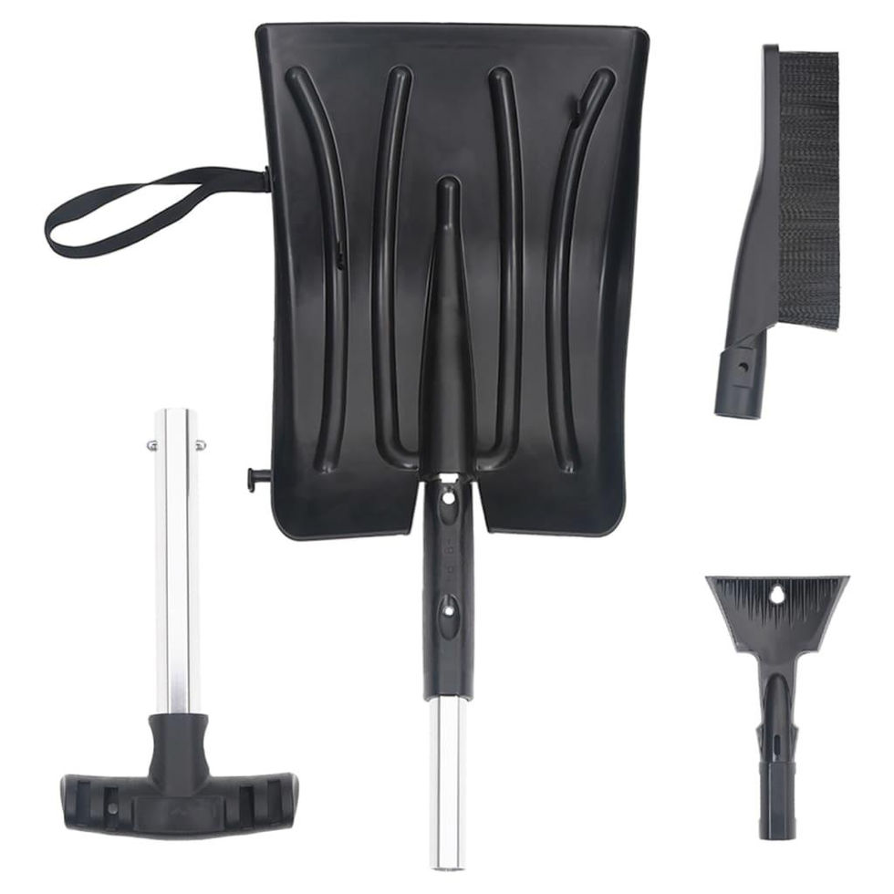 This snow shovel kit, supplied with a brush head and a scraper head, combines 3 functions into one and makes your tiresome work of removing snow and ice a breeze. 3-in-1 multi-purpose snow kit: This snow remover kit contains a snow shovel, a brush head and a scraper head, and you can easily replace the head to get a snow brush or ice scraper to easily cope with different situations.Durable material: The pole is made of anodised aluminium, which is characterised by its excellent durability and robustness. In addition, both the PP and ABS materials have high wear resistance and toughness.Comfortable handle: The handle is T-shaped and has multiple grooves that fit well in your hands with gloves for better grip and prevent slipping.Easy storage: You can easily take apart the head and handle for convenient storage, and the strap on the shovel head makes it easy to pack these parts together quickly.